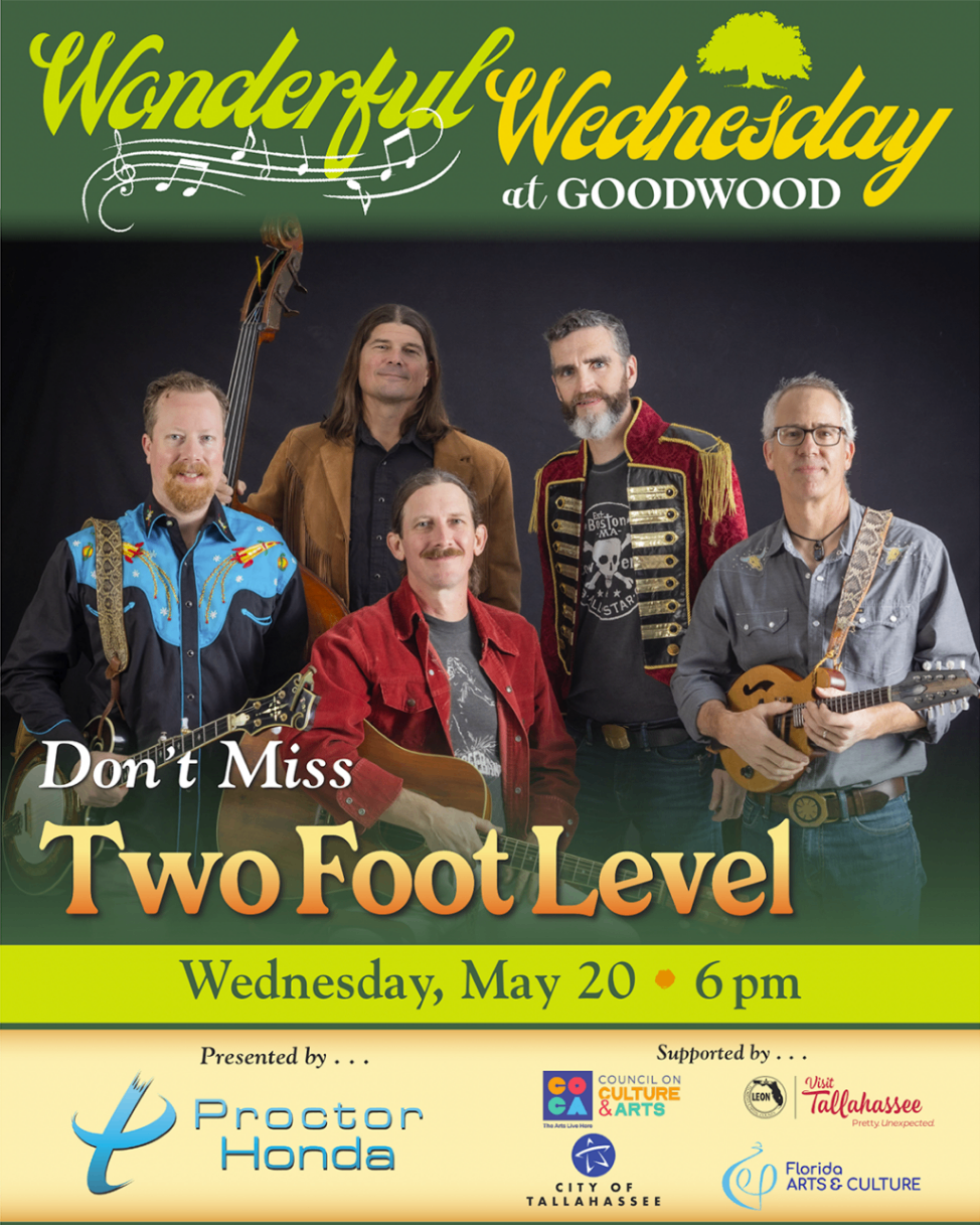 Two Foot Level hails from the tree canopied 7 hills of Tallahassee, Fl. The bands' instrumentation is clawhammer banjo, acoustic and electric mandolin, acoustic guitar, upright bass, drums and vocals. Though these instruments could be found in most bluegrass bands, with the exception of the drums, and while Bluegrass stylings are part of the bands sound, there's much more to it.