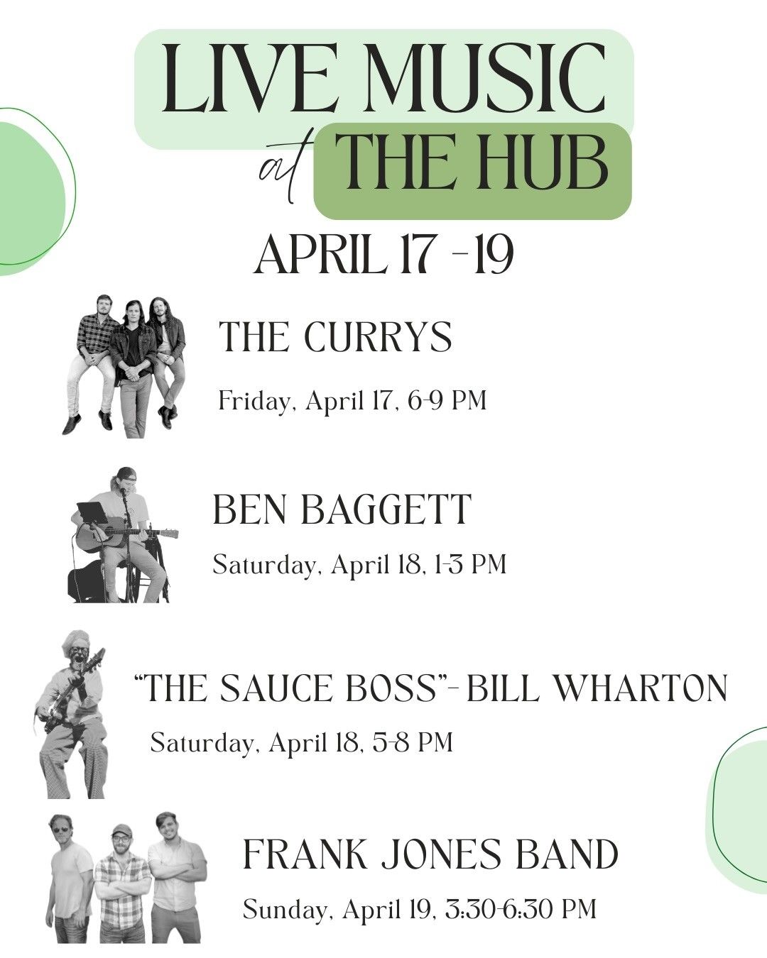 Frank Lindamood, Bruce Graybeal, Hot Tamale, Due Artisti, The Dusty Gravelers, Humble Road Band, and CJ & the Deadmen